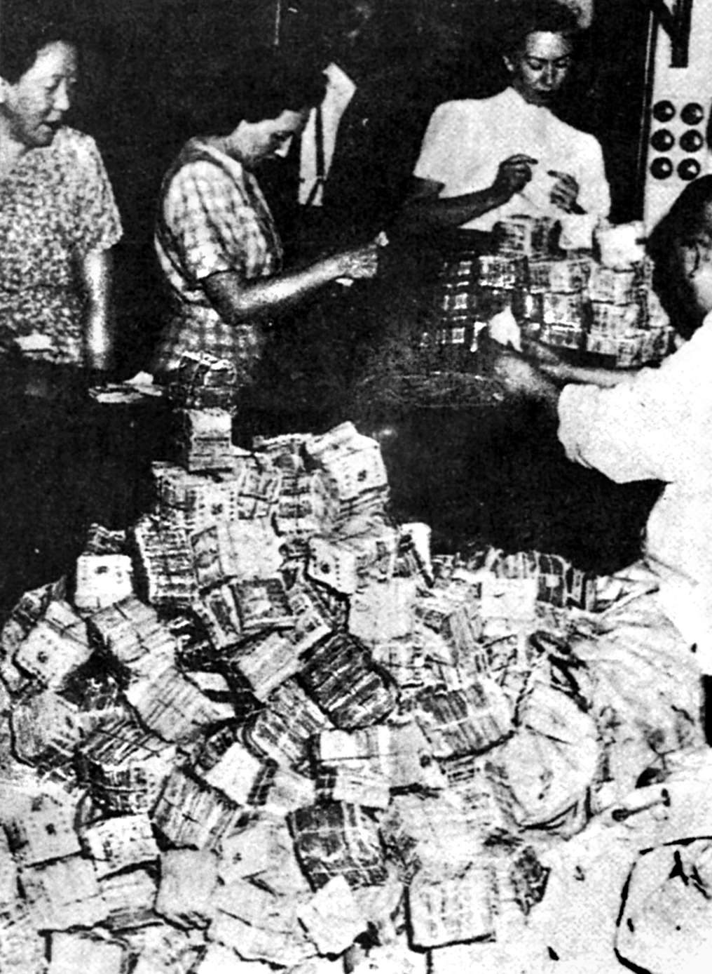 (堆积如山的金圆券加速了国民党政府经济总崩溃)
