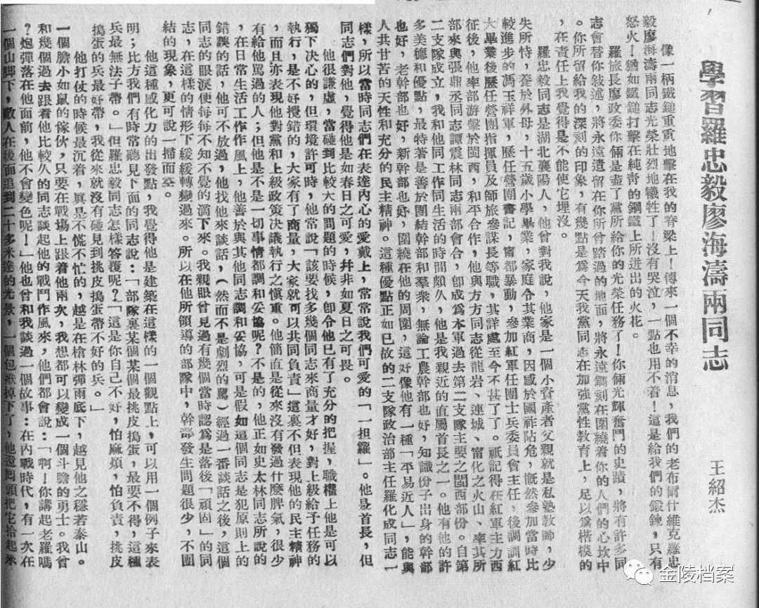 1941年5月,新四军第二支队整编为第六师第十六旅,罗忠毅任旅长,廖海涛任政委兼政治部主任,下辖四十六团、四十八团,战斗在茅山与溧水、溧阳一带。