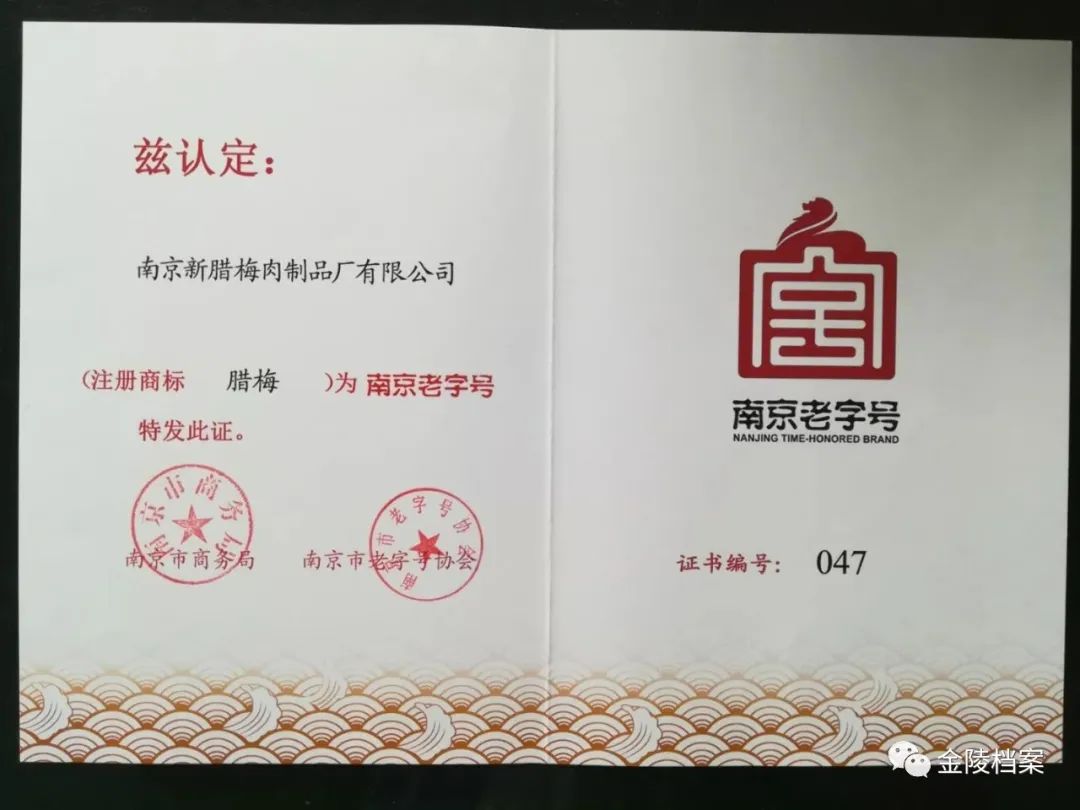 1982年 其生产的香肚正式命名为“腊梅”牌香肚。南京香肚的制作工艺被传承下来,2016年荣获南京老字号品牌。