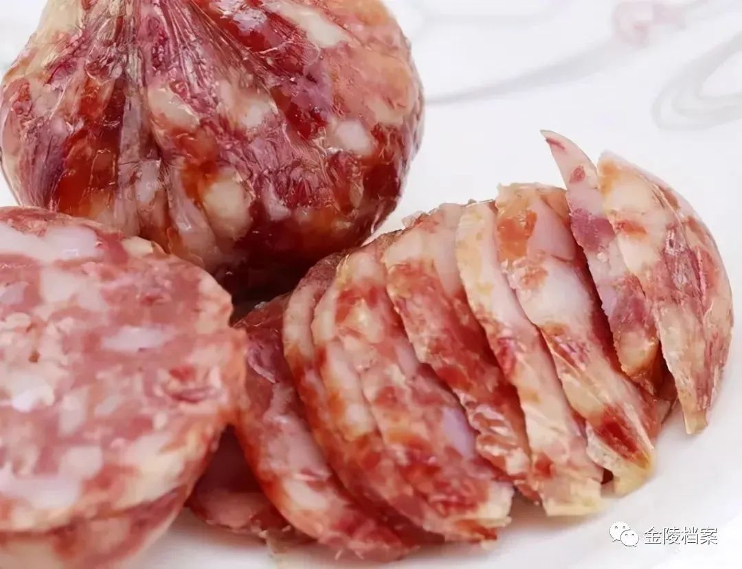 一城一味,南京人置办年货的时候,咸肉、咸鸡、咸鹅、板鸭,四大金刚,一个都不能少。每一个咸货,都有一道独特的配方。在南京还有一道名菜,它圆溜溜,甜丝丝,其形似苹果,皮薄有弹力,不易破裂,娇小玲珑,肉质紧实,红白相间,切片可“薄如婵翼”,吃起来香嫩爽口,略带甜味。它就是江苏省市级非物质文化遗产——南京香肚。