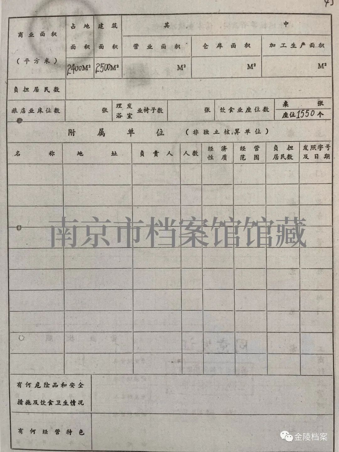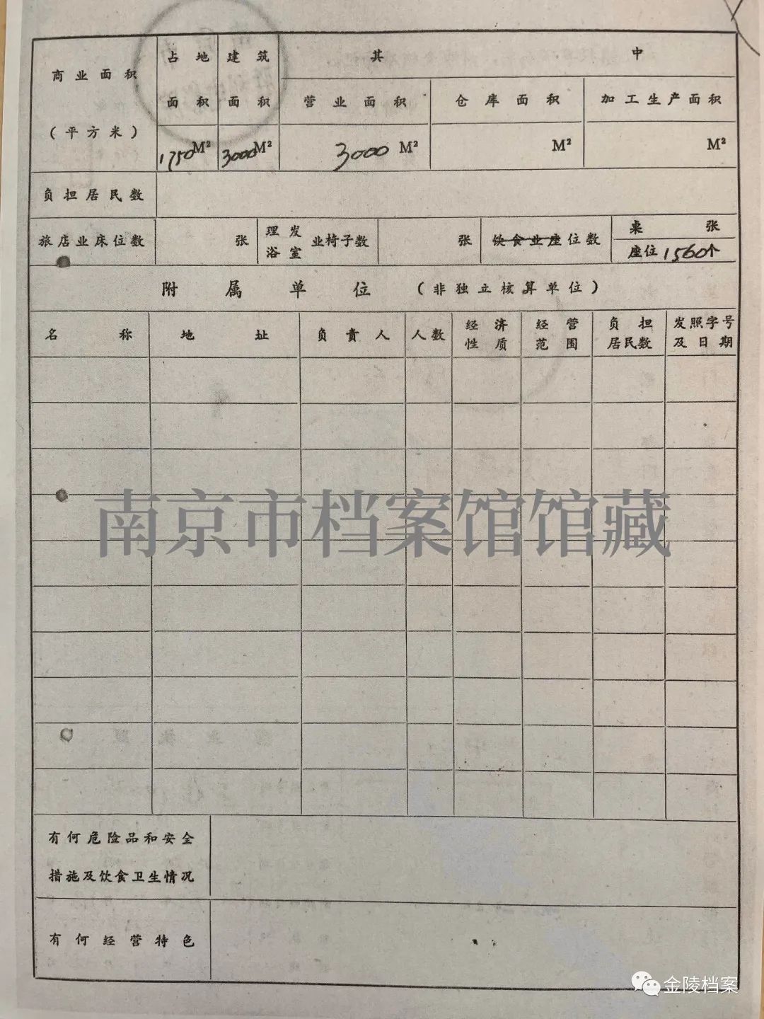 1982年胜利电影院商业登记表(南京市档案馆馆藏)