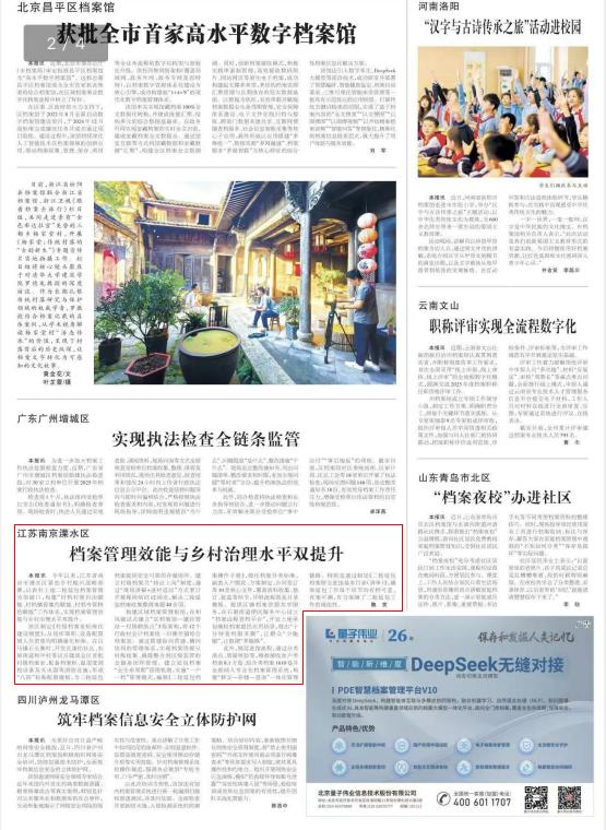 10月13日,《中国档案报》第4351期第二版刊登了溧水区档案馆撰写的稿件《江苏南京溧水区 档案管理效能与乡村治理水平双提升》。
