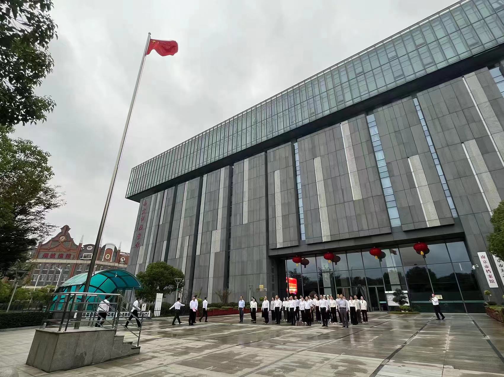 10月1日,中华人民共和国迎来75周年华诞。在这举国同庆之日,上午9时,市档案馆、市方志馆隆重举行升国旗仪式。在激昂雄壮的国歌声中,鲜艳的五星红旗冉冉升起。参加仪式的全体人员整齐列队、肃立致敬,护旗手迈着坚定步伐,擎旗手迎风振臂,全体人员齐唱国歌,向国旗行注目礼,表达对伟大祖国最崇高的敬意和最美好的祝福。(崔益艳)