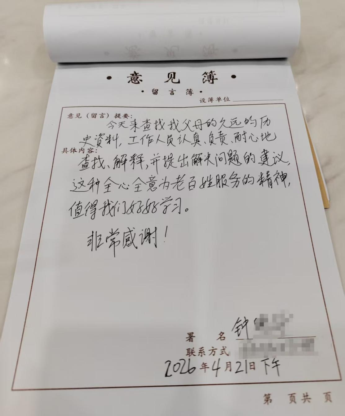 全程贴心的服务,让群众深受感动,在后续反馈中表示:“今天遇到你,真的太幸运了!感谢你专业的服务、耐心地解答和帮助,我会按照你的建议去做的,把结果告诉你。”一句朴实的感谢,既是对档案服务工作的认可,更是对档案馆“为民服务”初心的最好诠释。下一步栖霞区档案馆将不断提升服务质效,用实际行动践行着档案工作的责任与担当。